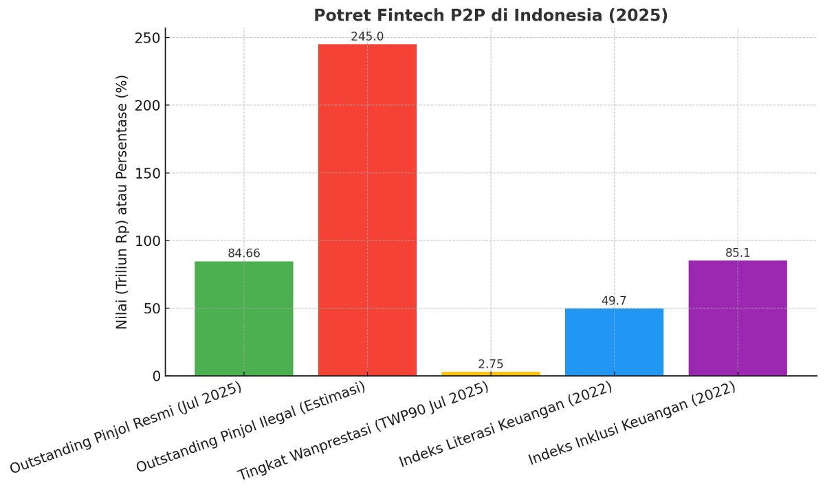 OJK dalam laporannya mencatat, hingga Juli 2025 total pembiayaan fintech P2P mencapai Rp84,66 triliun, meningkat 31,23 persen dibanding periode yang sama tahun lalu.