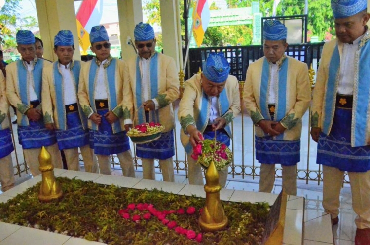 Usai apel, rombongan melakukan tabur bunga dan doa bersama di pusara sang pahlawan.
