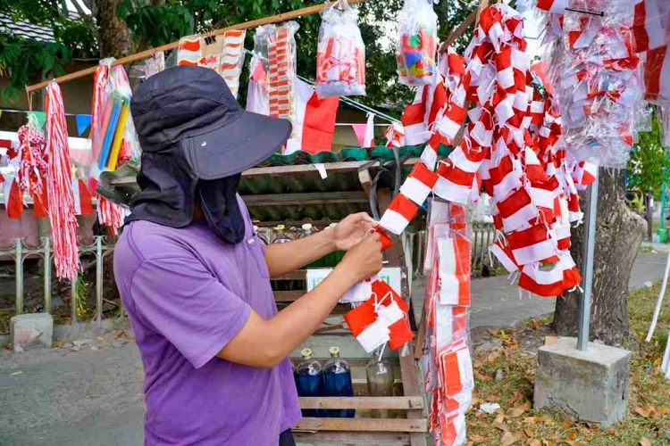 Kemunculan penjual bedera merupakan fenomena tahunan menjelang peringatan Hari Kemerdekaan RI. (BANUATERKNI/Infopublik/Purba Andika)