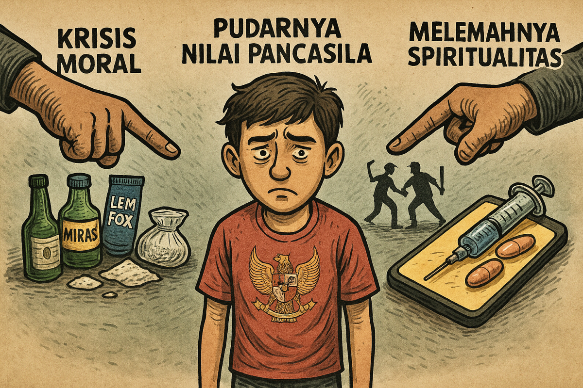 ILUSTRASI: Krisis moral generasi muda: terjebak di antara narkoba, kekerasan, dan hilangnya nilai Pancasila (BANUATERKINI/Rey)